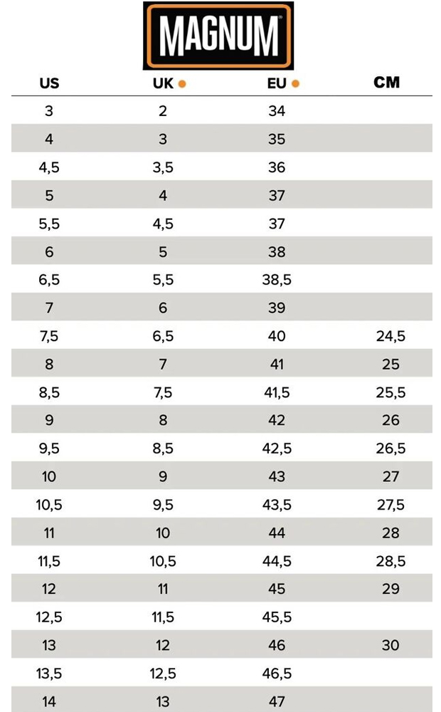 Magnum designs their boots for professionals such as military, police, and security personnel. Every detail is well thought out to ensure the boots can be worn all day long in tough conditions.