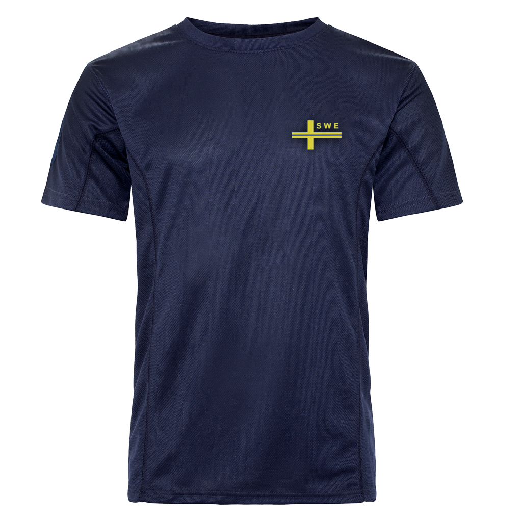 Stilfullt designad funktionströja med Thin Blue Line SWE-logotyp, tillverkad av robust Quick Dry Mesh-tyg. Snabbtorkande och bekväm att bära. Atletisk passform, formar sig elegant efter kroppen. Perfekt för längre utomhusaktiviteter och kan bäras under taktisk utrustning. Ger enastående komfort under friluftsäventyr.